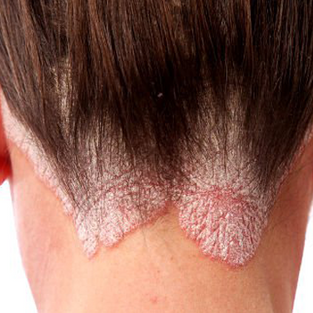 Manchas rojas en la piel cubiertas con escamas gruesas y blanquecinas / plateadas.